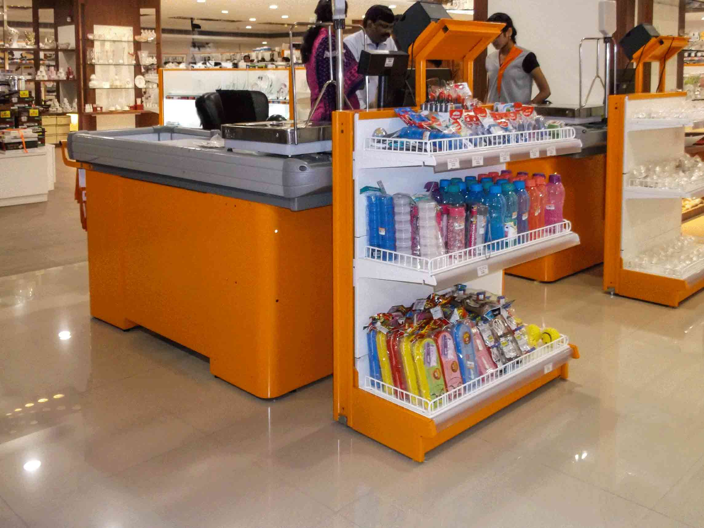 Optimize your checkout process with our ergonomically designed billing counters, tailored for high-traffic retail environments. With provisions for barcode scanners, bag hangers, and POS systems, these counters offer convenience and streamline the customer experience.