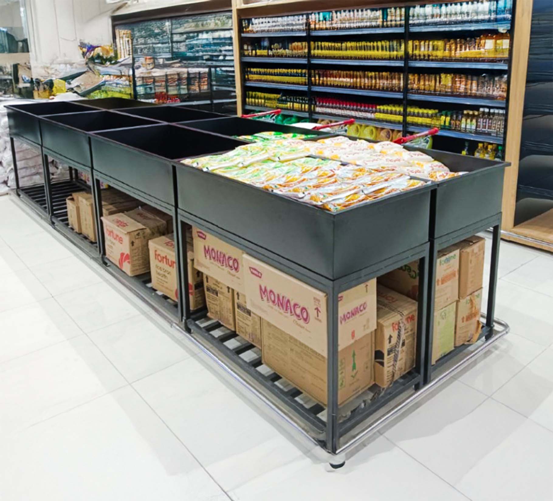 Our custom-designed grocery racks are built to maximize wall and floor space, offering superior load-bearing capacity and exceptional durability. Whether you need specific racks for individual products or flexible systems for layout adjustments, we provide tailored solutions to fit your store’s needs.